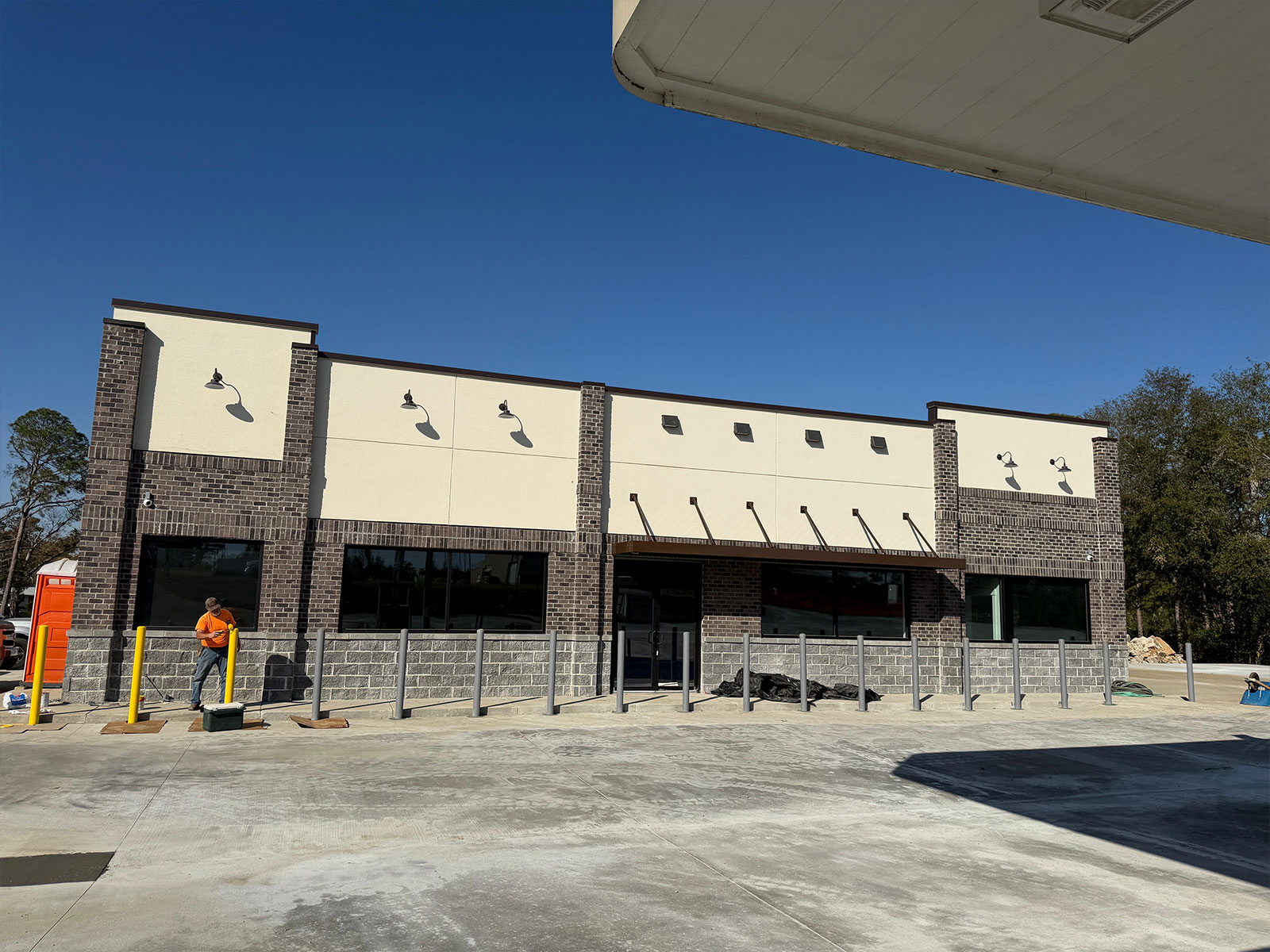 Introducing Swift Stop, a 3500sqft. modern convenience store designed for both style and efficiency in Lyons, GA! The front elevation showcases a striking mix of stone, brick, and stucco, creating a bold and inviting presence. Sleek square windows add a contemporary touch to the front façade, while the remaining three sides maintain a clean stucco finish. Thoughtfully designed for convenience and visual appeal, Swift Stop is set to become a local favorite!